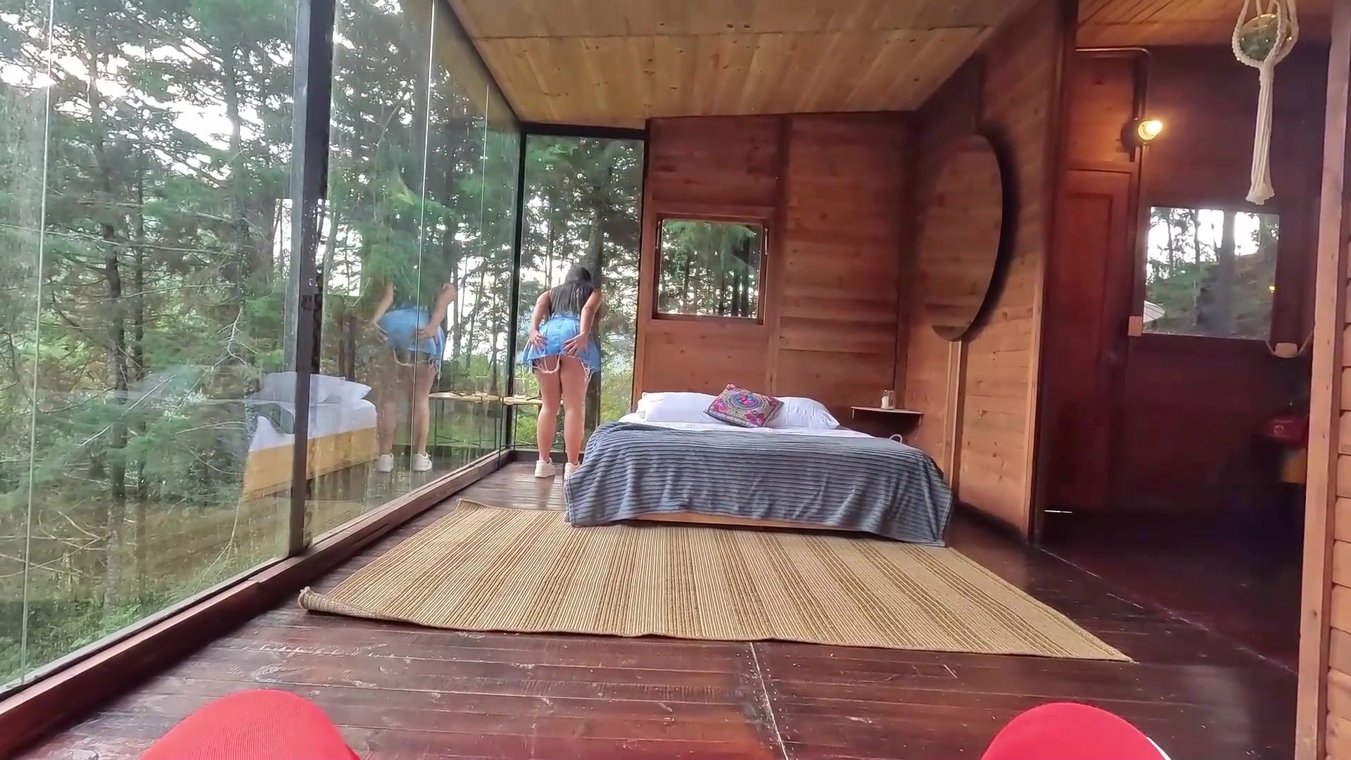 Bouncing on a massive cock in broad daylight teasing the neighbors in this amateur...