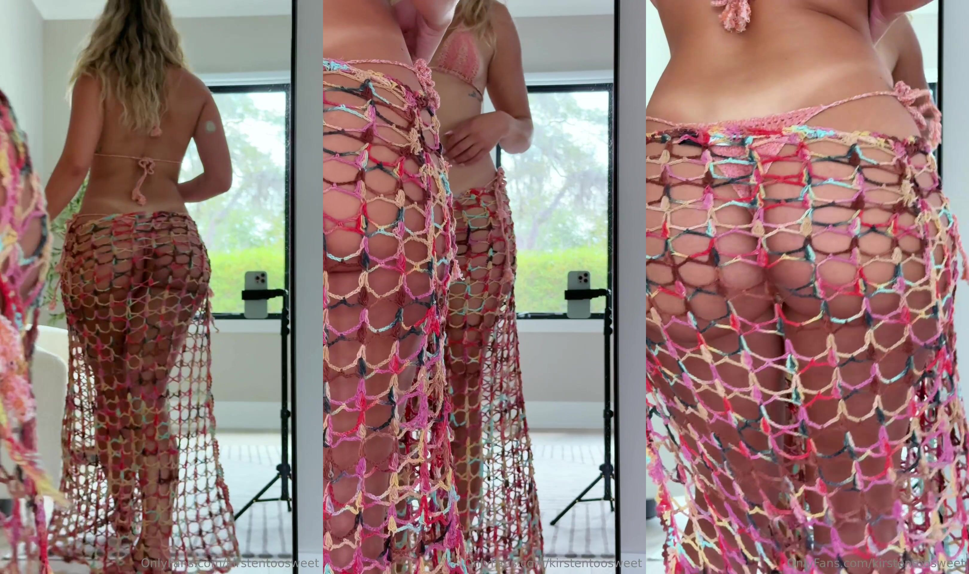 Kirstentoosweet rocks a sexy net dress in this teasing video, showing off her curvy body and juicy ass for your pleasure.