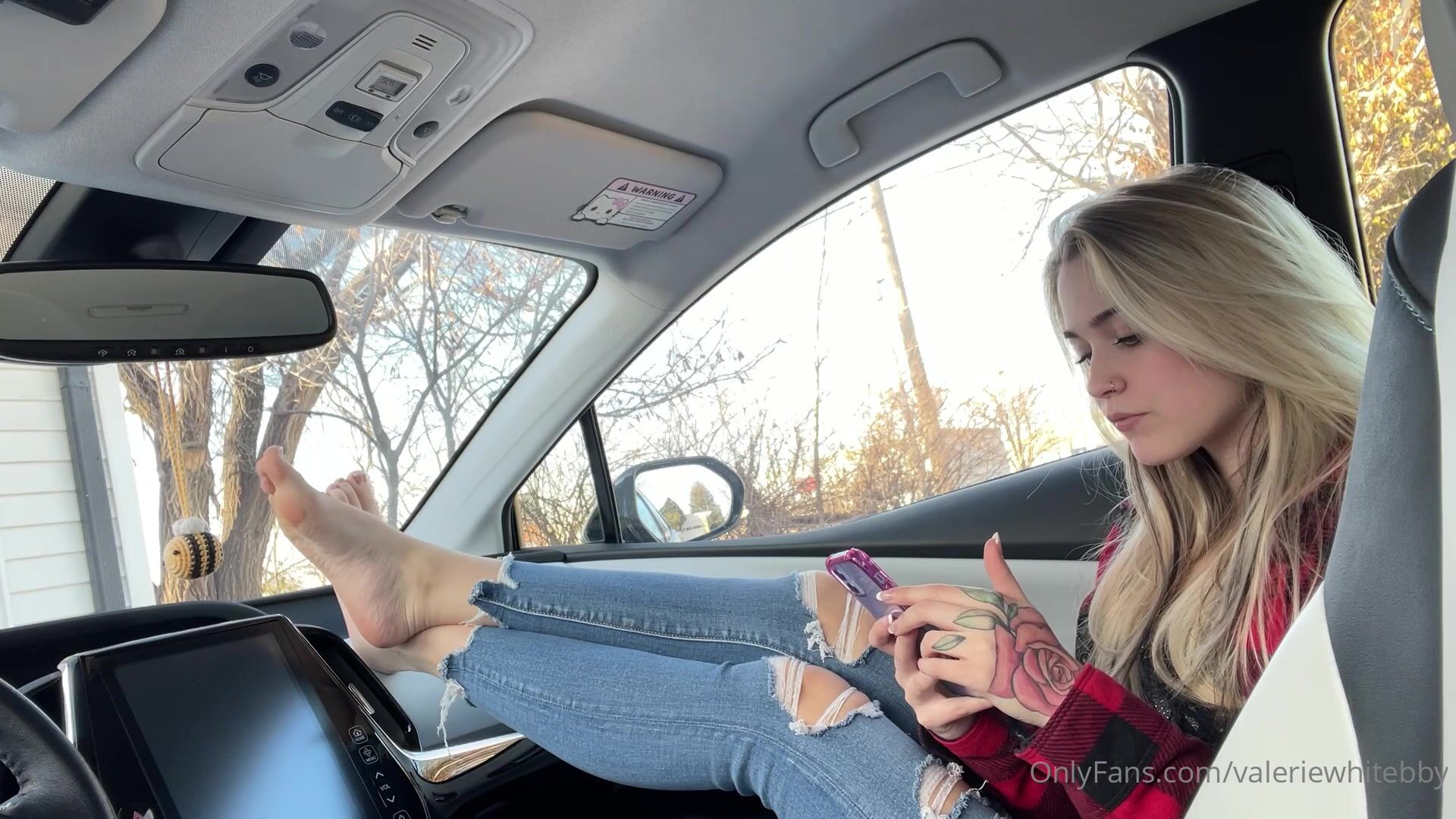 Description: Blonde babe Valeriewhitebby loves showing you her perfect feet in this car ride home video on OnlyFans.