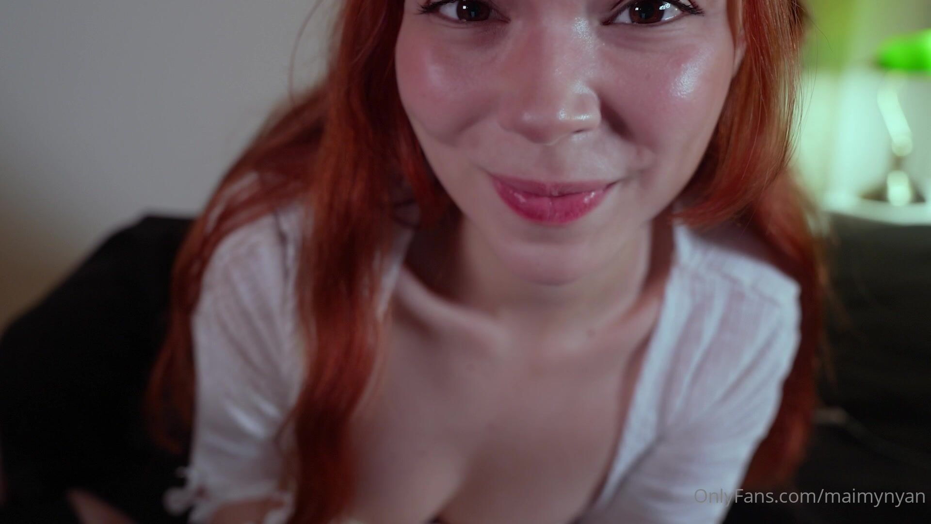 Cute redhead Maimy Nyan strips her top on OnlyFans and shows her juicy tits in this irresistible video