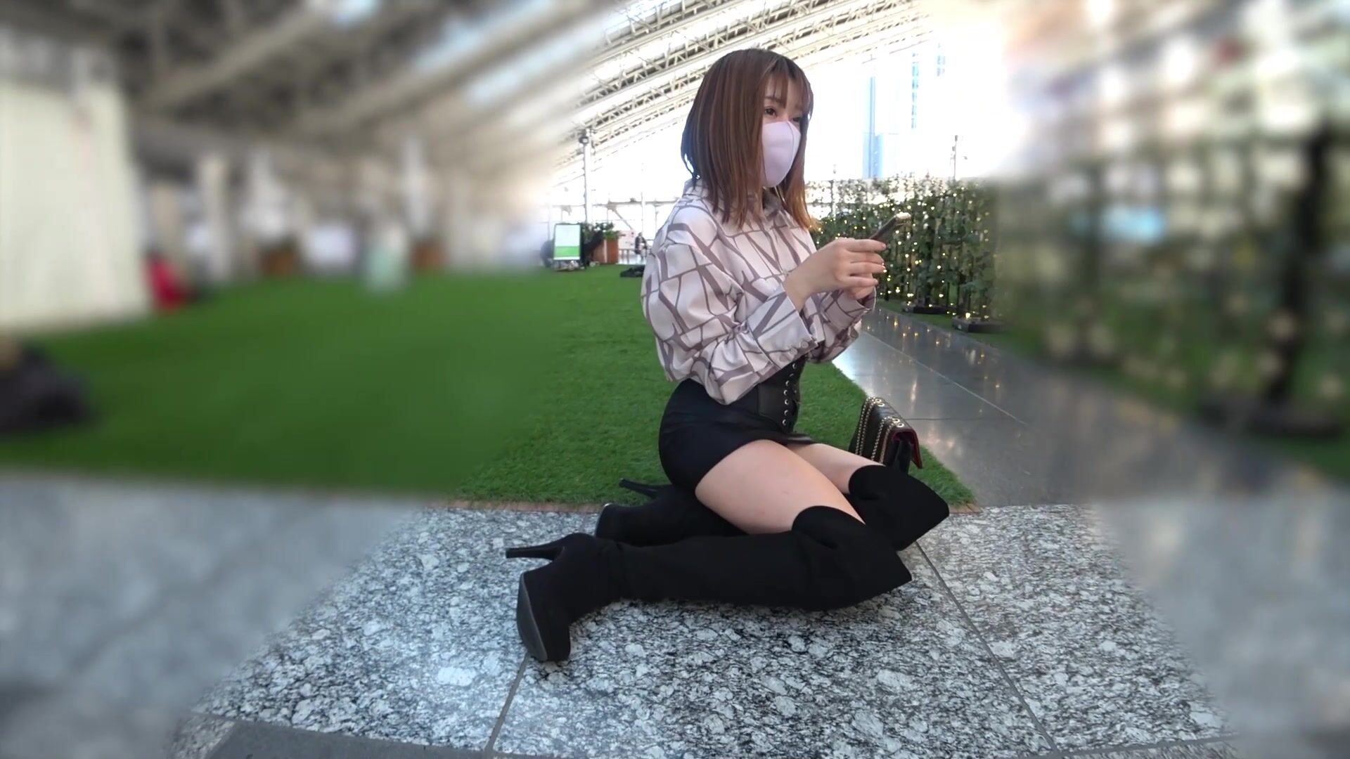 Description: Asian Petite Cutie struts in public wearing thigh-high boots and a revealing skirt in this video. Watch as this masked beauty teases with upskirt views and seductive poses in a crowded setting.