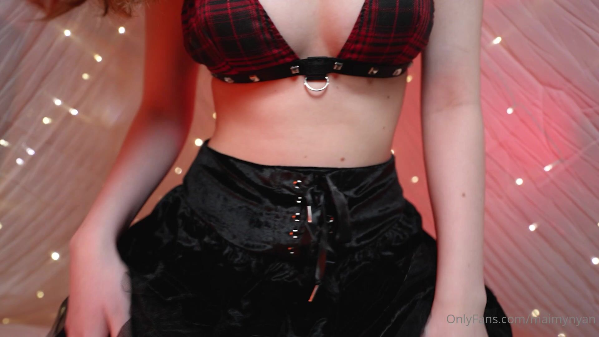Exclusive OnlyFans video featuring Maimy Nyan in a gothic tease with checkered lingerie and a choker gives a Handjob.