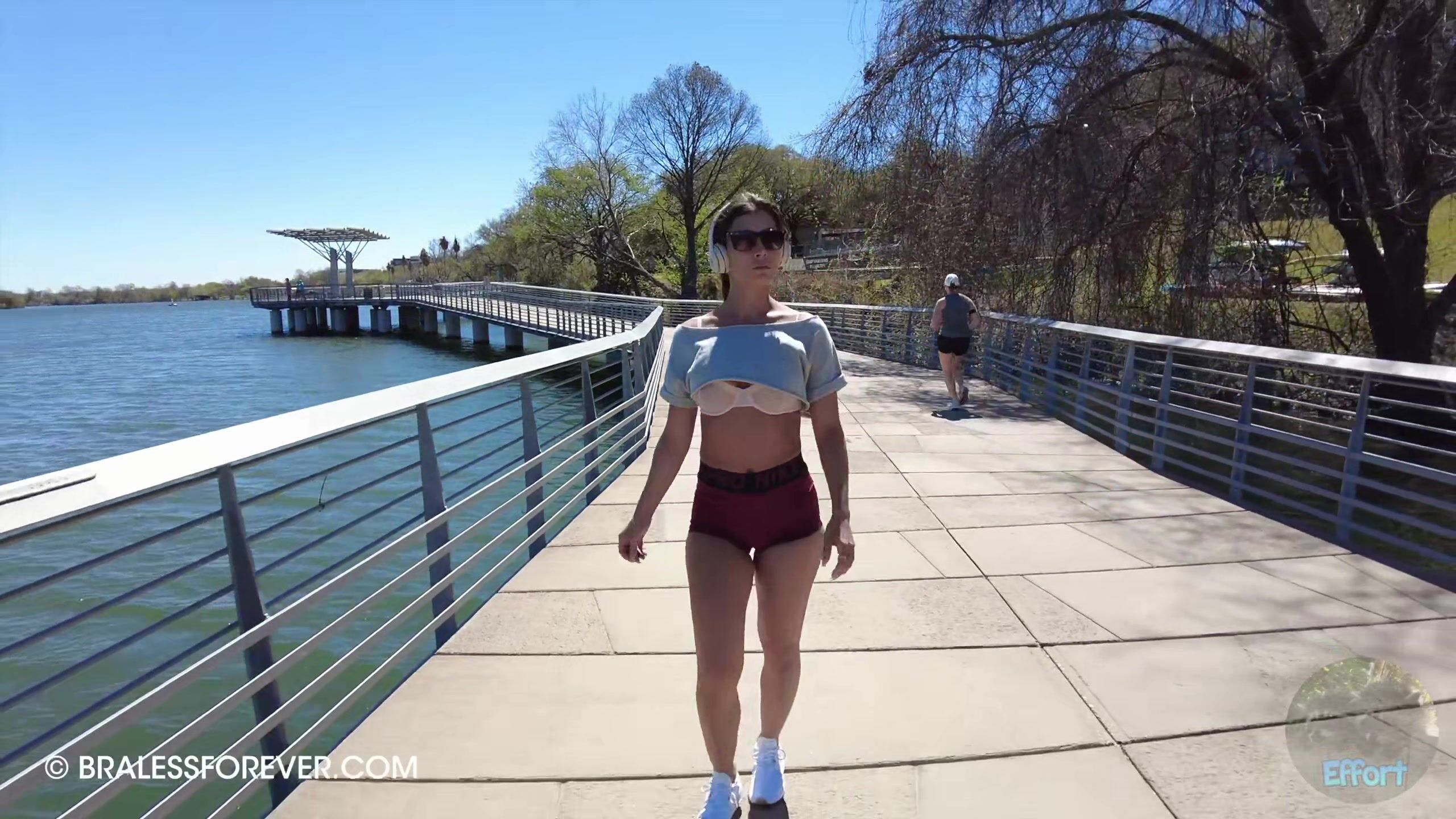 Description: BralessForever's Emma G turns up the heat in this public workout video, showing off her fit body in tiny shorts and a crop top in broad daylight.