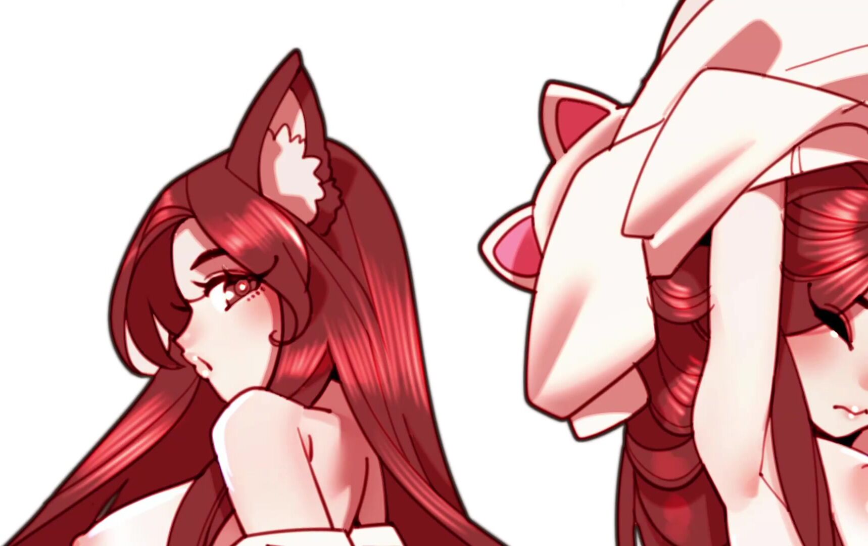 Curvy redhead Maimy Nyan play in lingerie and skirt during a cosplay-themed ASMR live stream video.