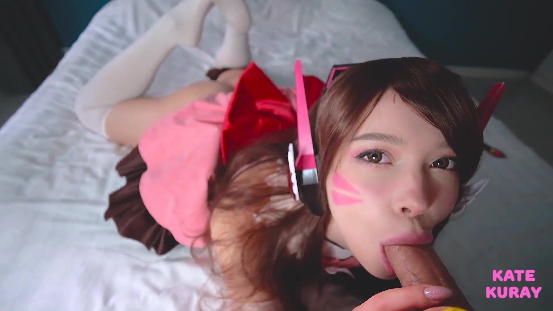 Cosplay cutie Kate Kuray sucks cock in this tantalizing POV video, teasing with her playful outfit and seductive eyes.