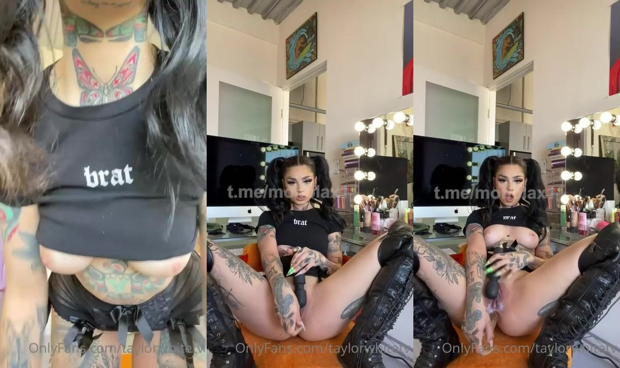 Tattooed goth girl Taylor White fucks herself during a live stream