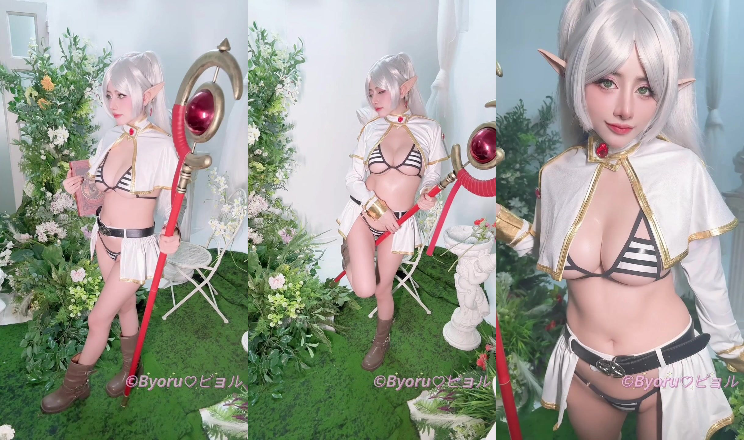 Byoru brings fantasy to life in this seductive cosplay video as a petite cutie in a detailed Frieren Beyond Journey's End costume playing with her staff