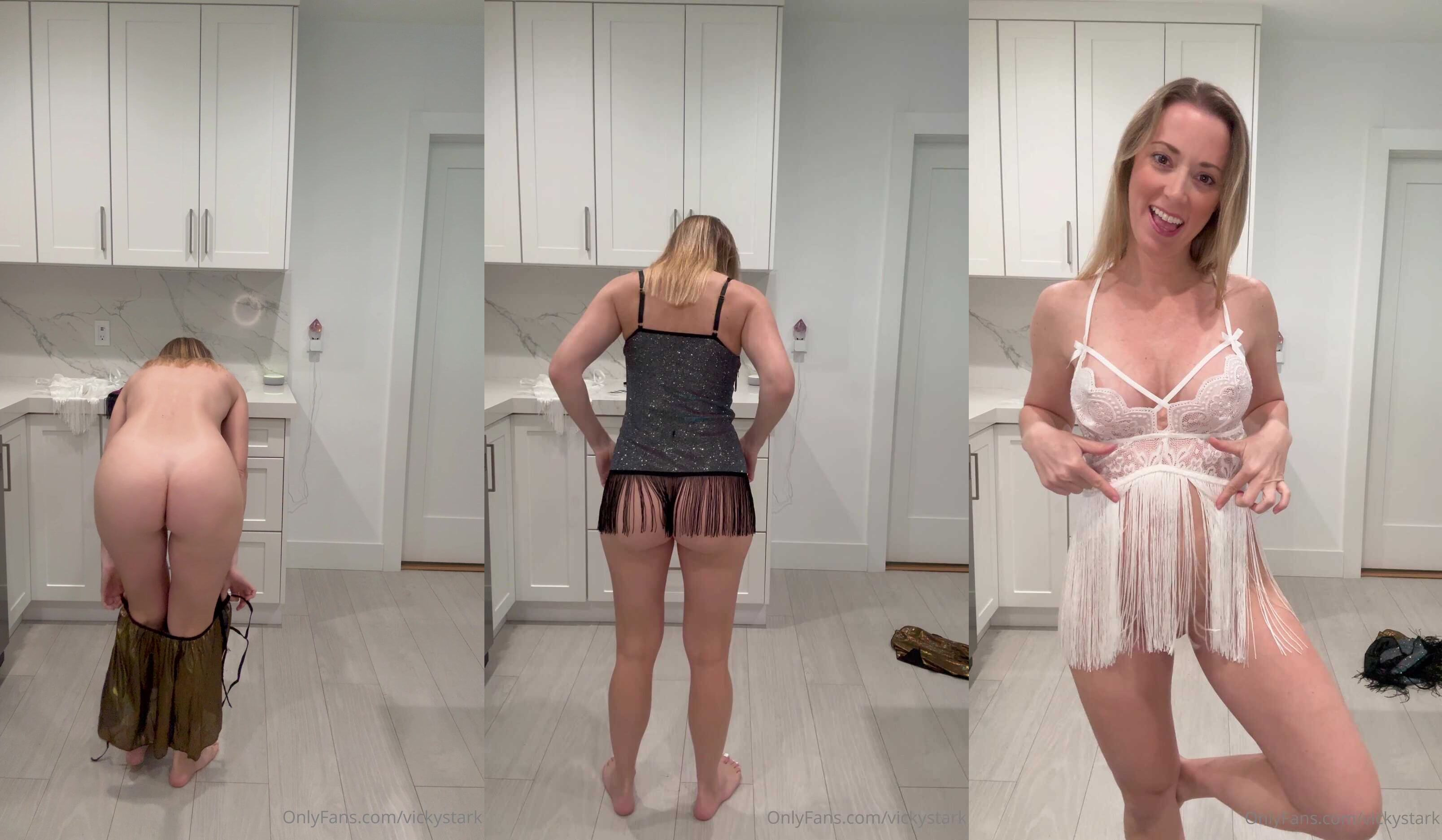 Description: Exclusive OnlyFans video featuring the stunning Vicky Stark as she teases in sexy lingerie and tight skirts, showing off her curves in a playful and seductive setting.