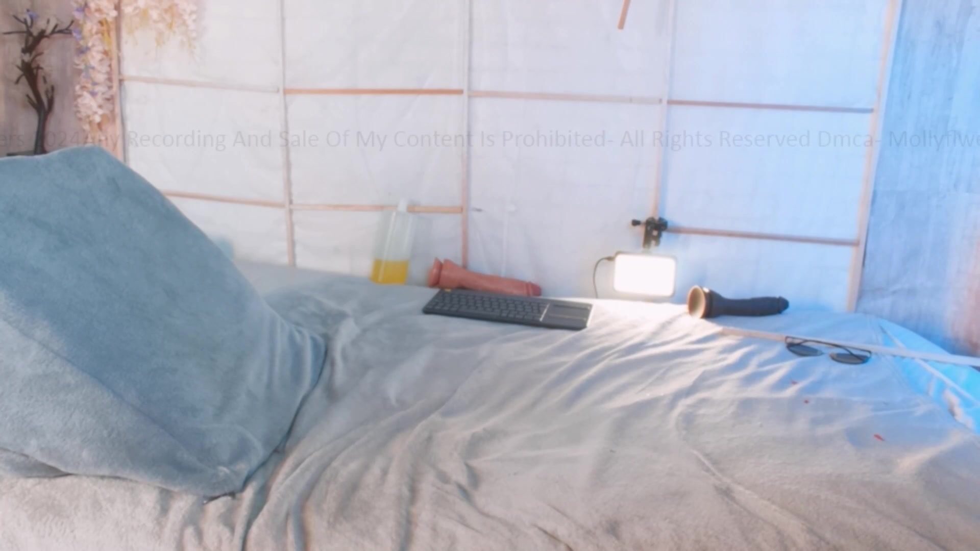 Mollyflwers gets kinky in blue bodysuit fucking huge dildo on live stream video