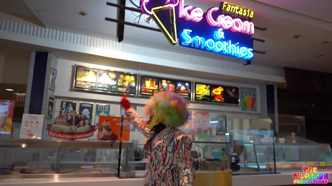 Ebony Petite Cutie and a clown get freaky in crazy Public places in this 17-minute video.