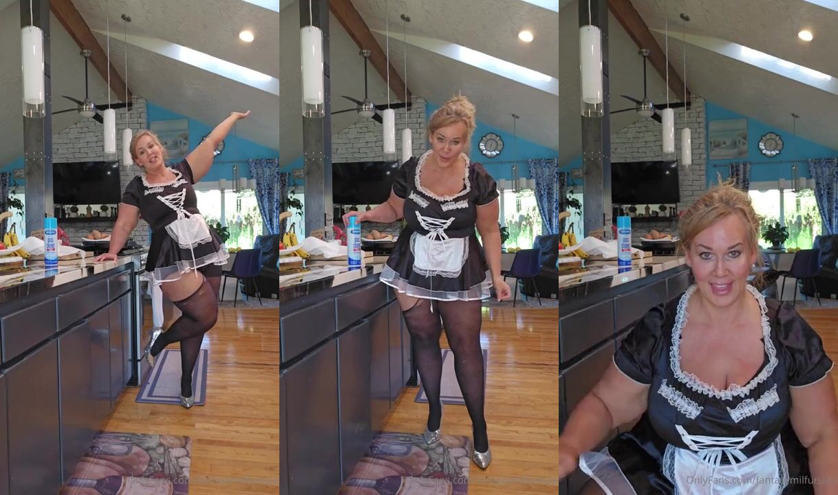 Ursula Andreia aka fantasymilfursula teases in sexy maid outfit and black stockings in this exclusive OnlyFans video