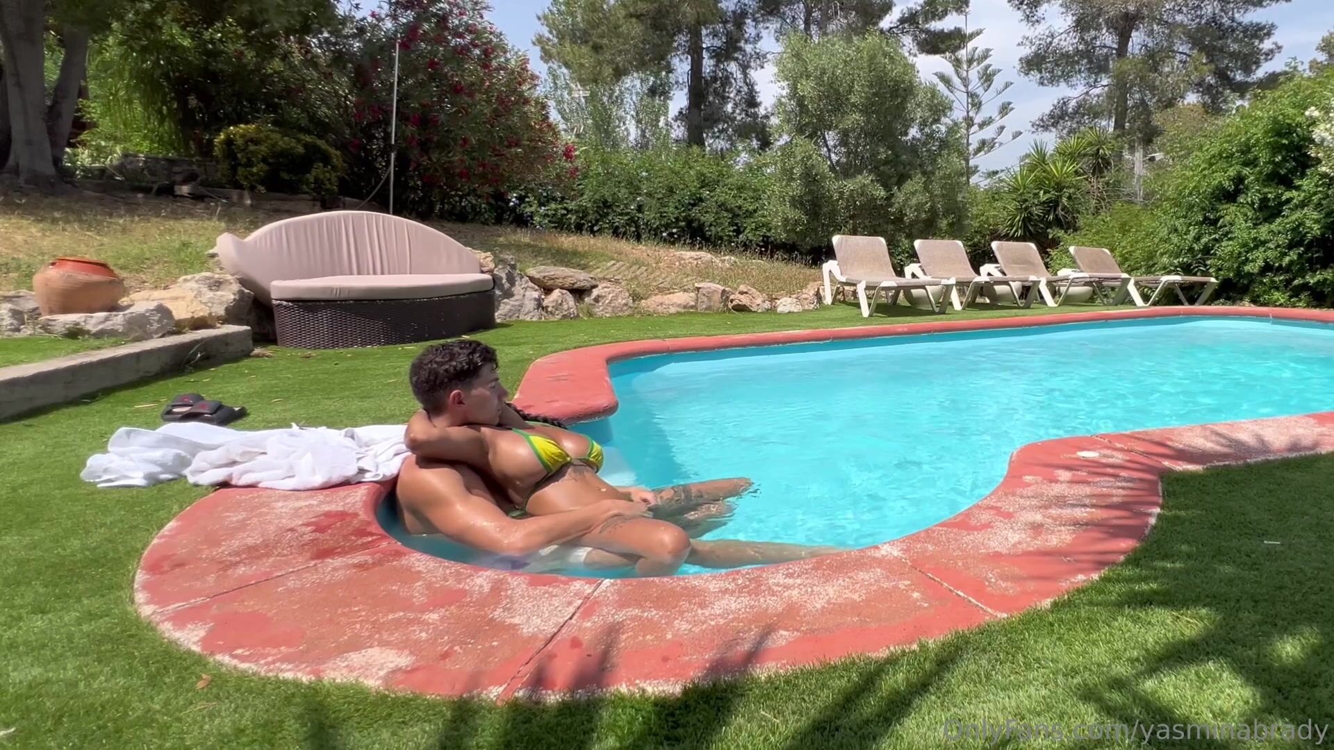 Yasmina Khan teases and pleases Brady Bud in a sizzling poolside fuck fest