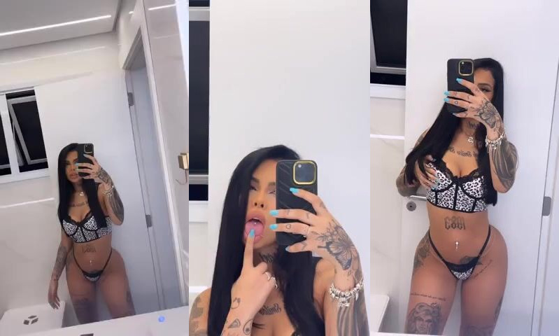 DJ Nathi starts the day right, teasing in barely-there panties as she films herself in the bathroom mirror for a steamy homemade video
