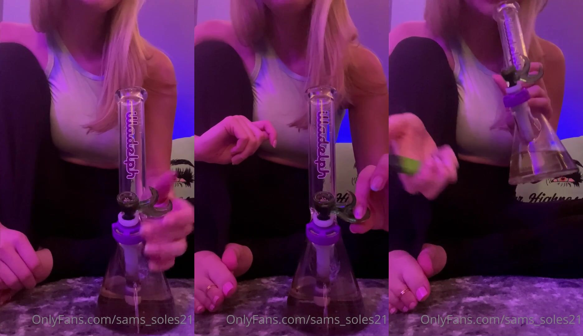 BlondeBaby21 SamsSoles21 gets her tight pussy pounded in this exclusive hardcore fuck fest video, teasing you with her perky tits and freshly fucked hair