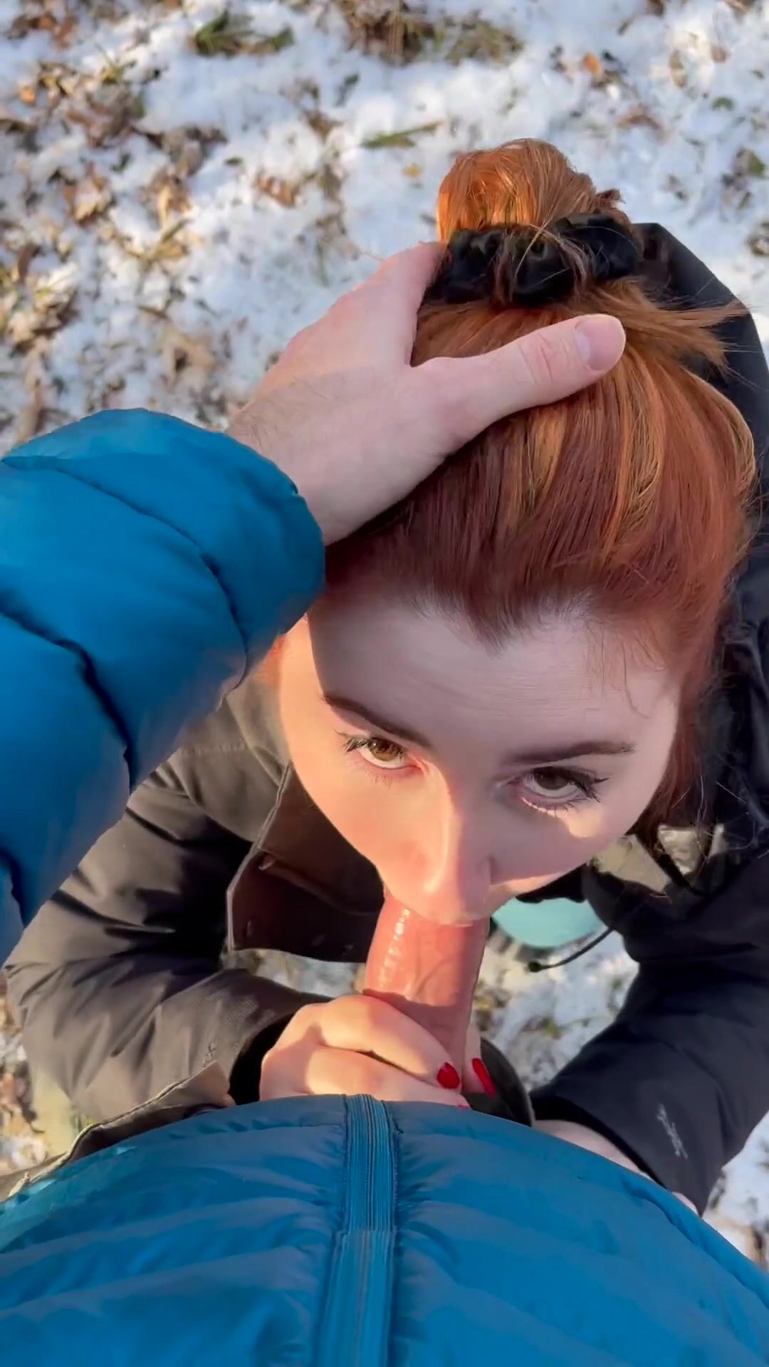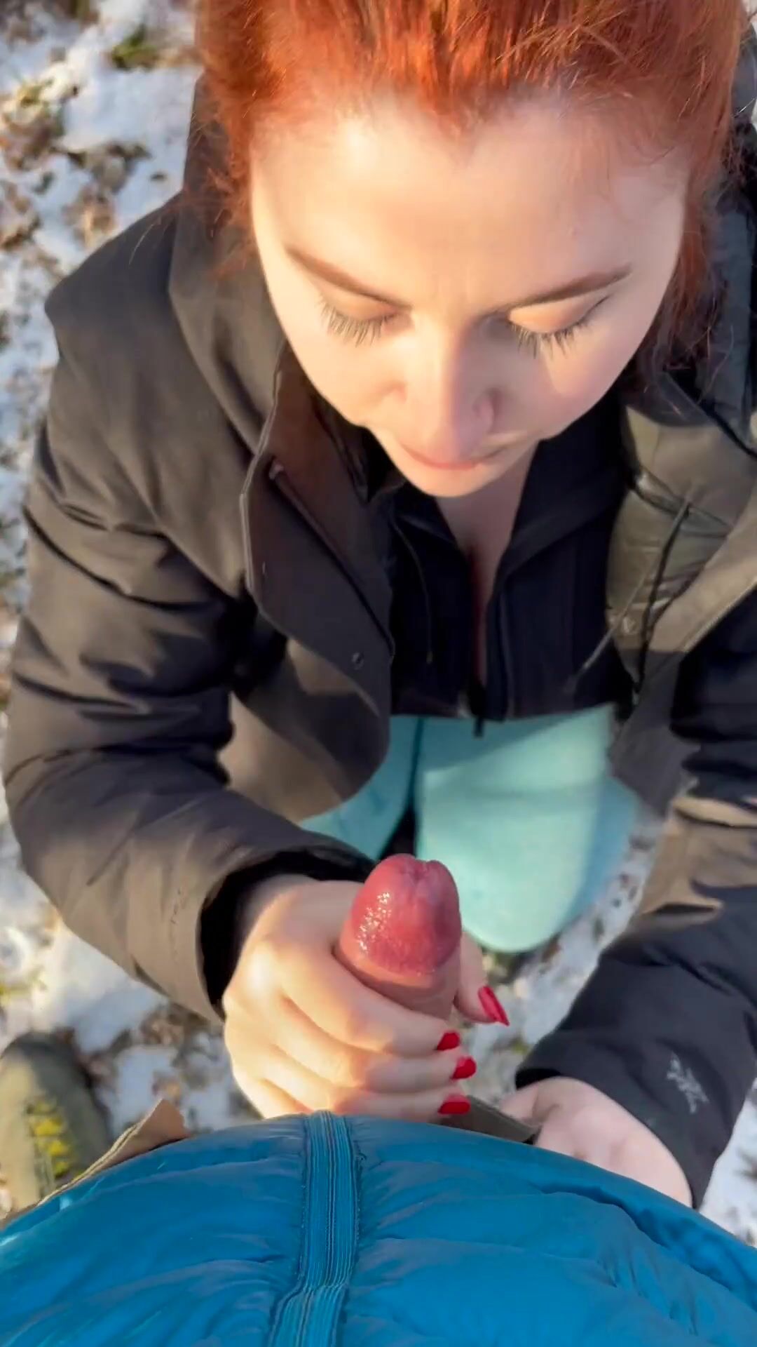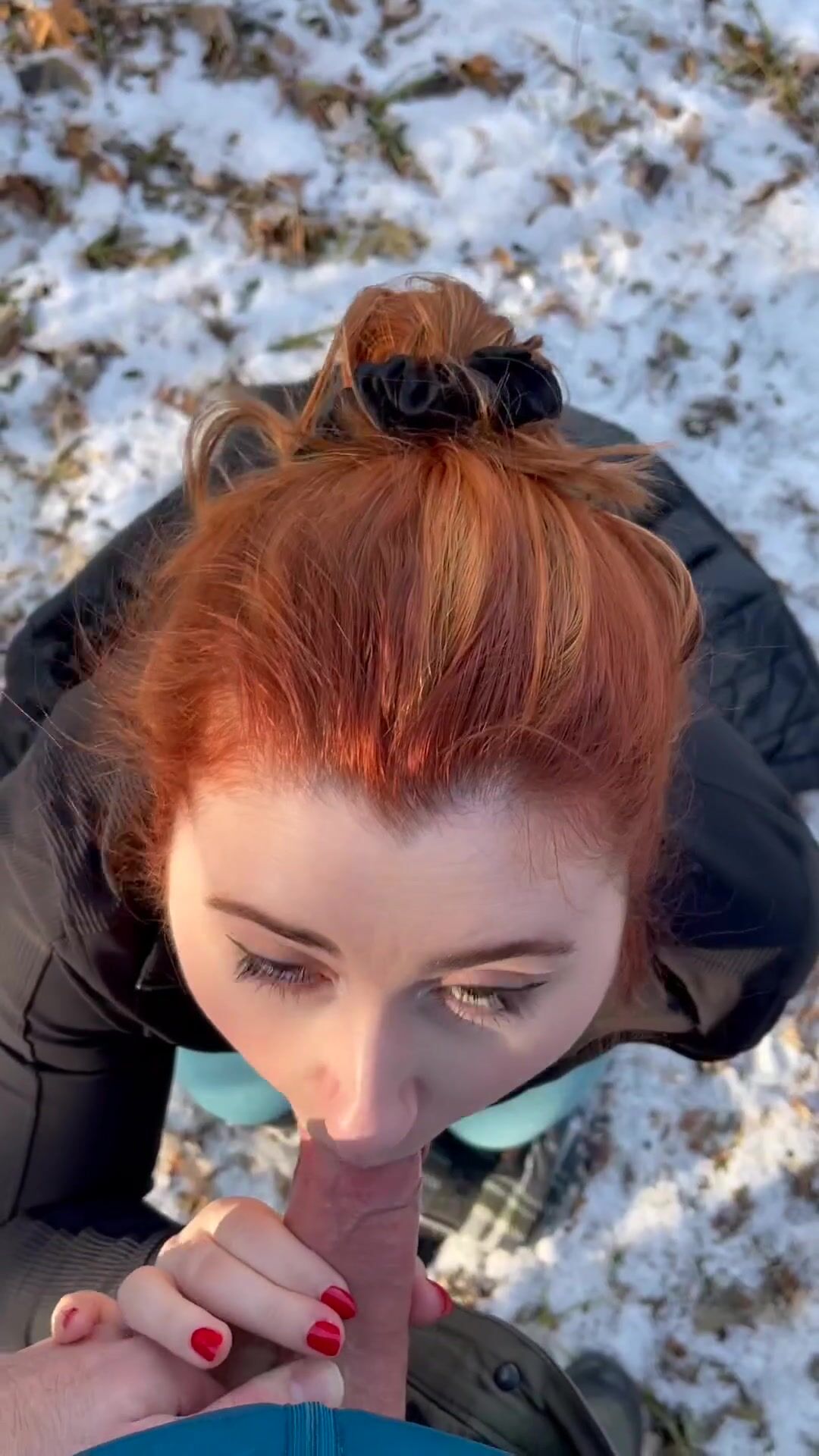 Isla Moon Red head Babe Blows Her Boyfriend Cock Hard in the woods outside